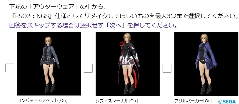 要するに運営が用意したコスチュームの中からNGS仕様にして欲しいものを選んで投票しろ、ということでしょう。