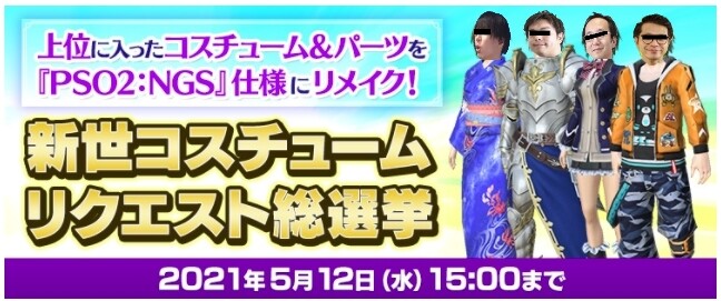 過去の人気コスチュームとキャストパーツの中から、『PSO2:NGS』仕様にリメイクしてほしいものを選んで投票!