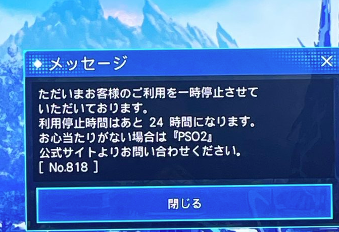 虚無期間に1週間停止w不正取得したもんで動かしたメセタロルバして没収までやれ