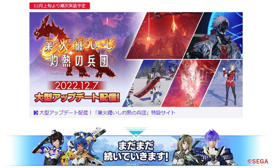 12/13現在、PSO2NGSは今後のロードマップが「何も表記されていない」模様。なお本スレ民いわくターニングポイントだから平気との事・・・。