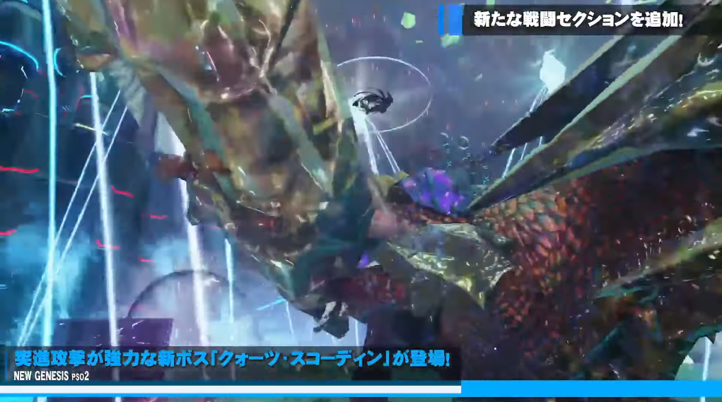 旧PSO2のエネミー「クォーツドラゴン」が「クォーツ・スコーディン」と名を変え進化?し実装される運びに。旧PSO2では人間語を喋ったり、仲間になる個体などがおり何かと印象深いエネミーであった。