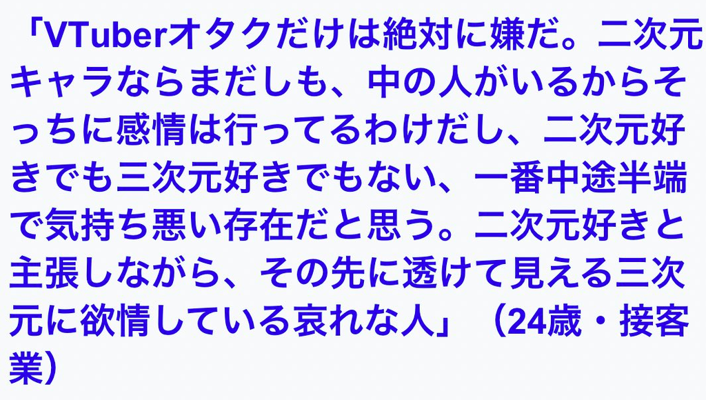 結局Vもガワ被っただけの俗物の人間やしそこまで金貢いでチヤホヤしたがる感覚理解出来ん('ω'`)