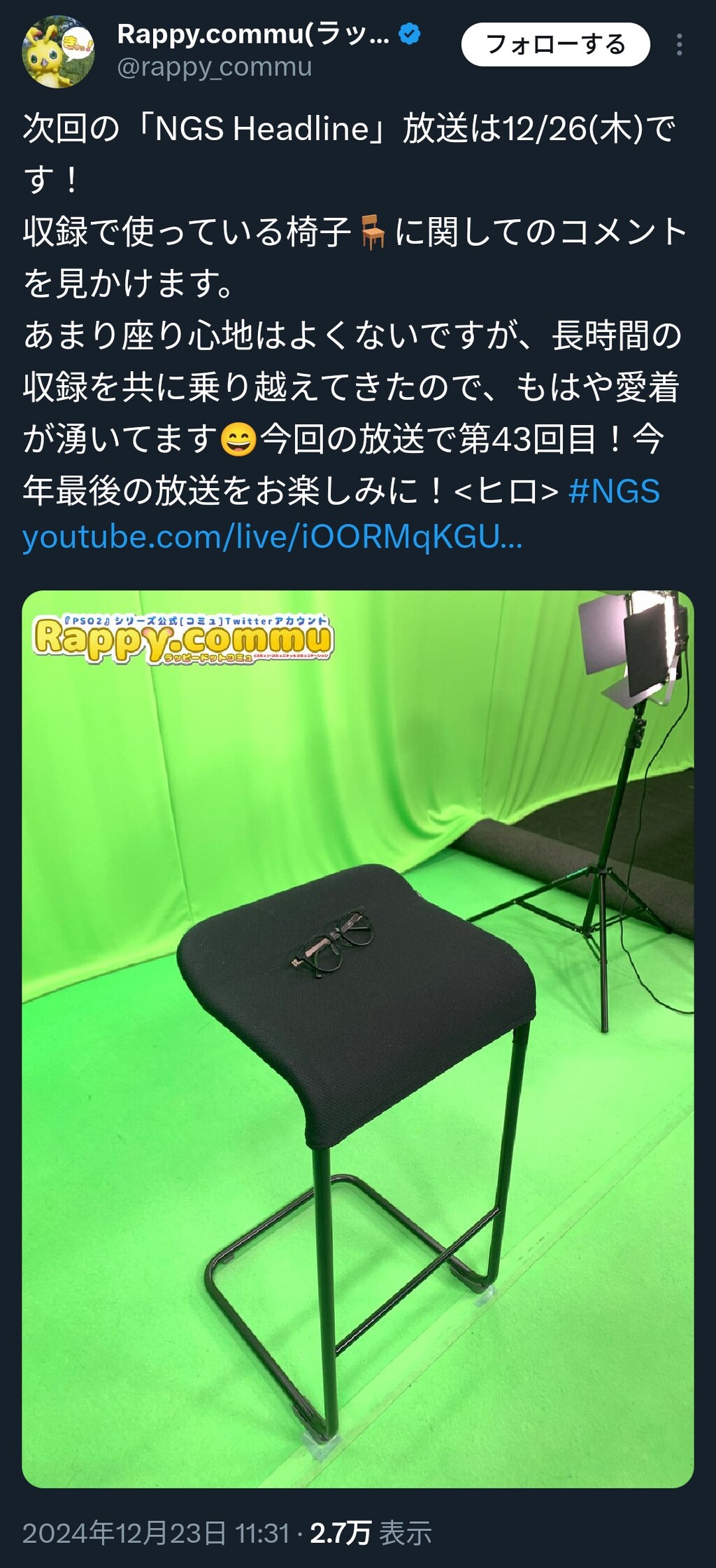 ヒロに椅子買ってあげろよ(•᷄ ὤ •᷅)