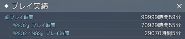 プレイ時間は99999時間59分でカウント止まります。#PSO2NGS#PSO2NGS_S︎S pic.twitter.com/ah2ID5zpmU