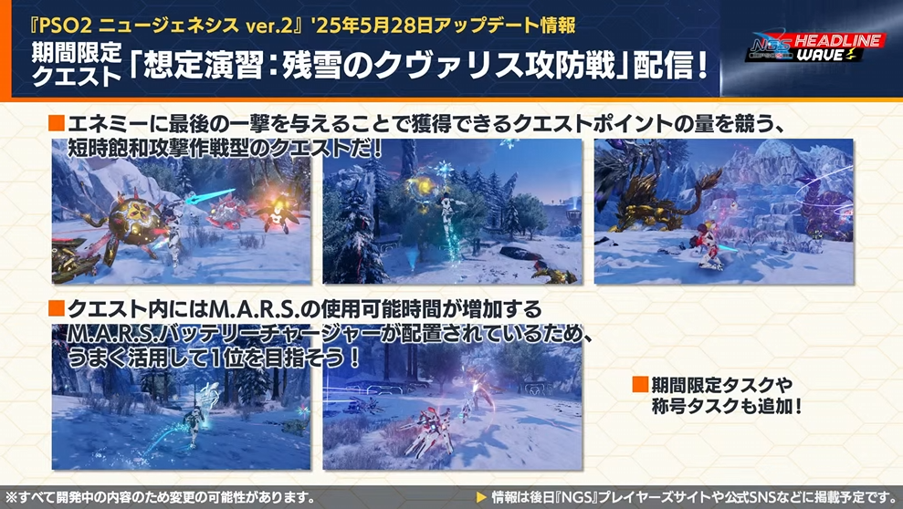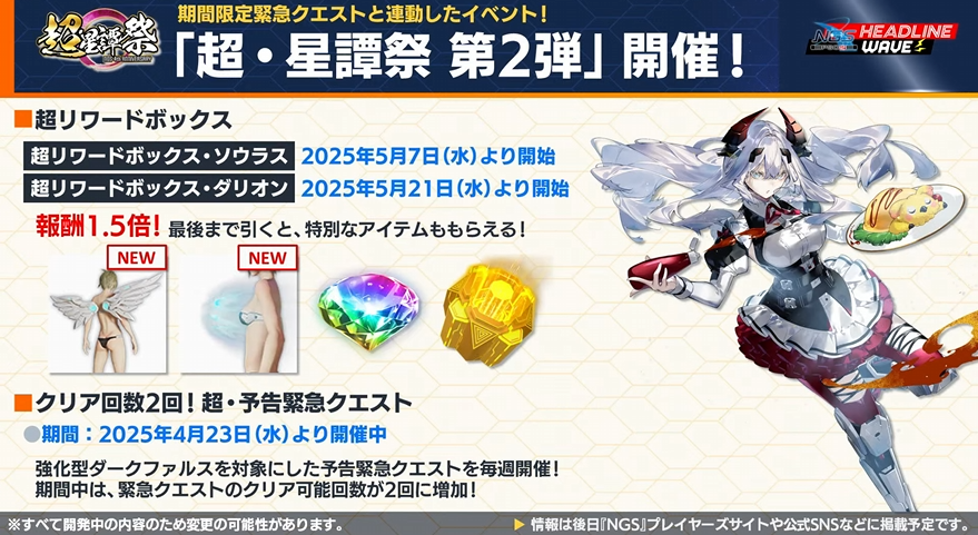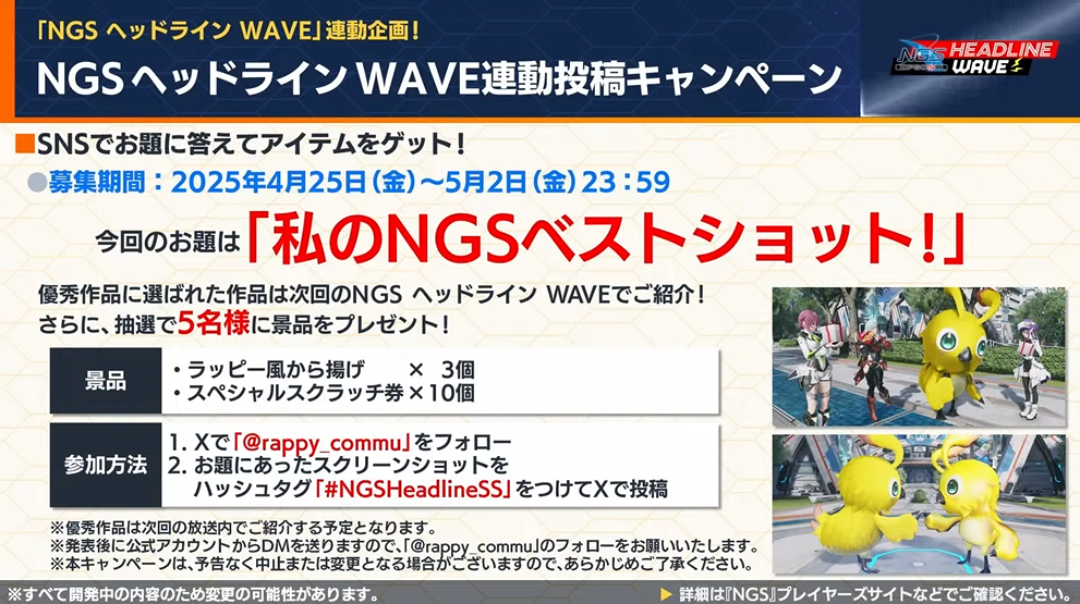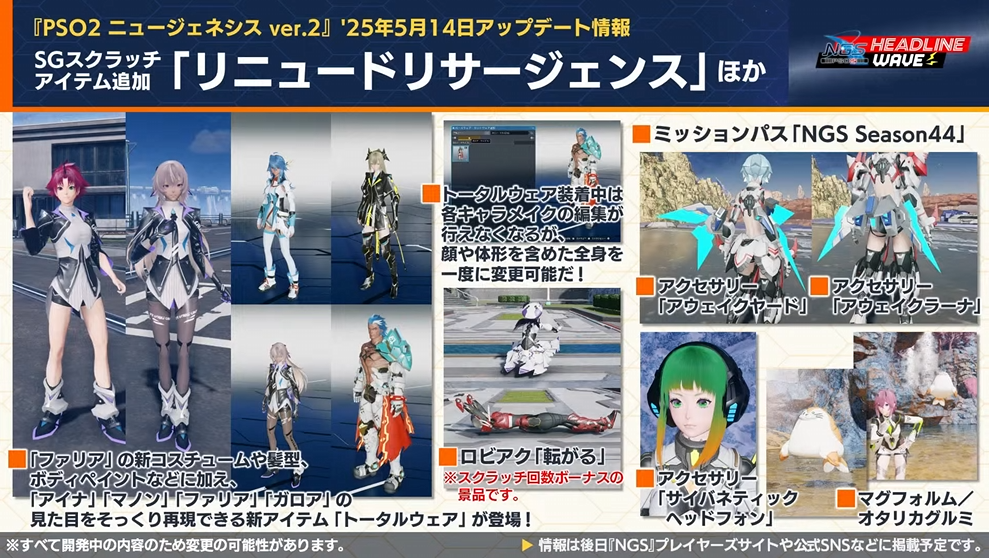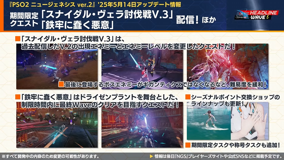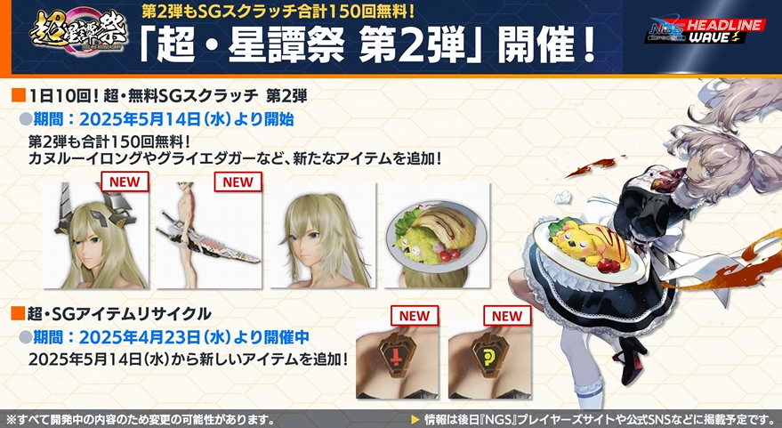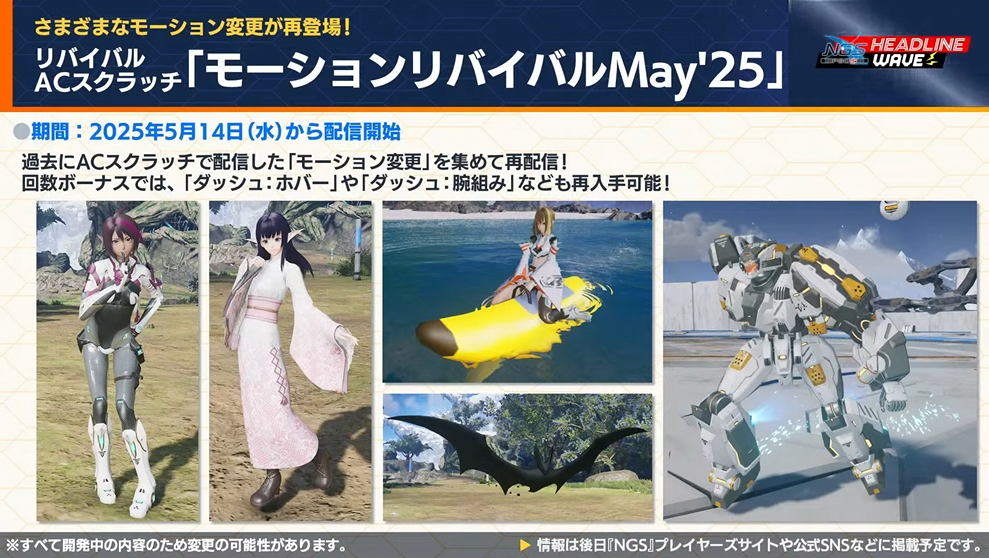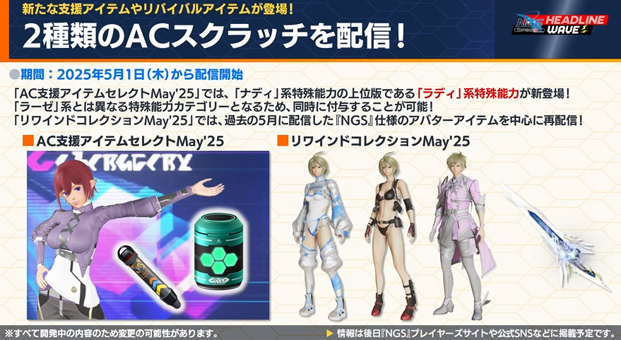 NGSヘッドラインWAVEを見るのがめんどくさい人用に25年4月25日NGSヘッドラインより5月以降のアップデート内容プチまとめ。重要な情報だけ抜粋、どうでもいい情報は省略&いい加減に引用しております。