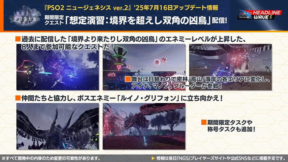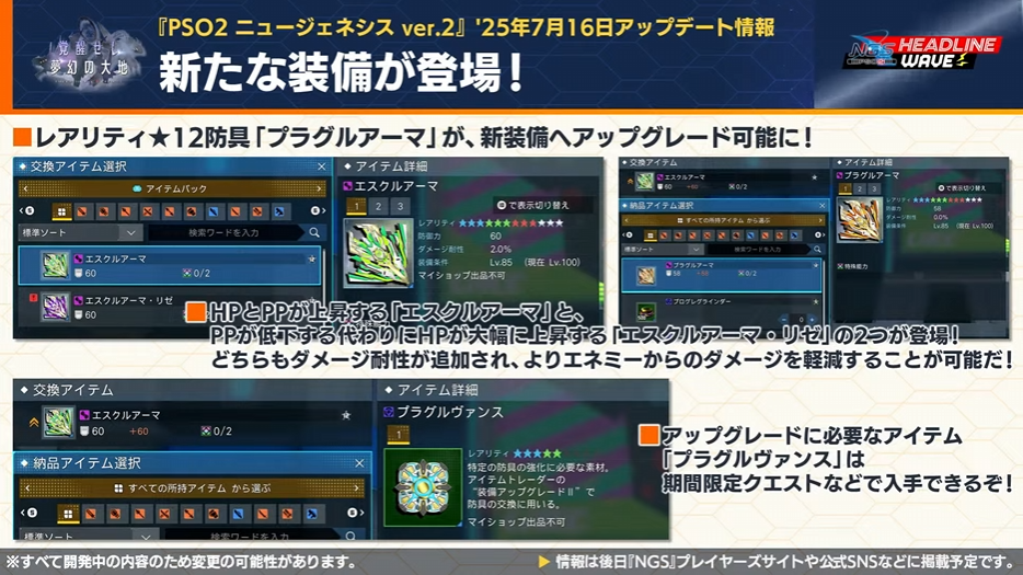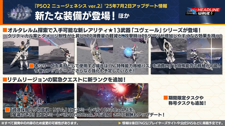 NGSヘッドラインWAVEを見るのがめんどくさい人用に25年6月24日NGSヘッドラインより7月以降のアップデート内容プチまとめ。重要な情報だけ抜粋、どうでもいい情報は省略&いい加減に引用しております。