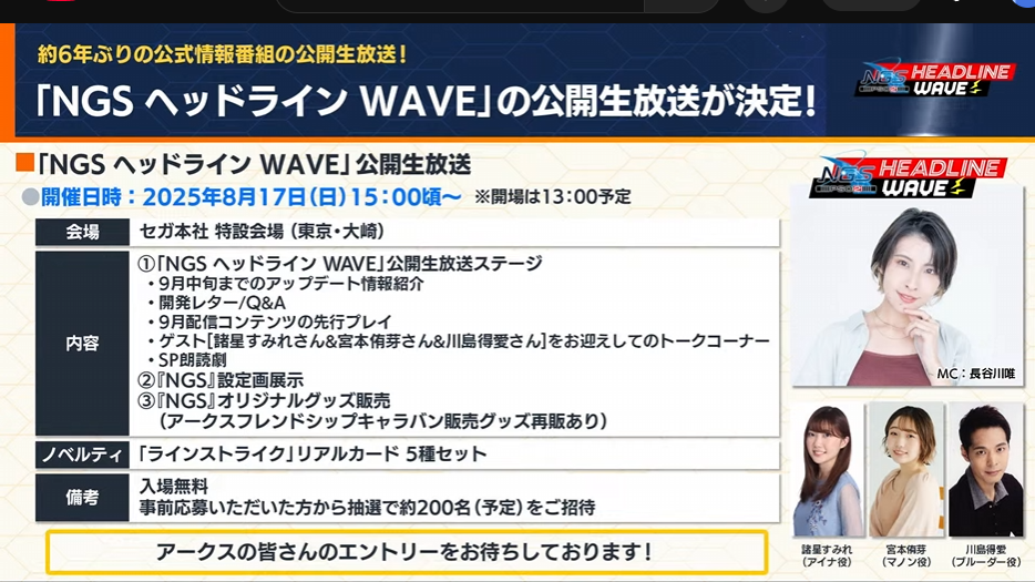 約 6 年ぶりの公式情報番組の公開生放送!「 NGS ヘッドライン WAVE 」の公開生放送が決定!