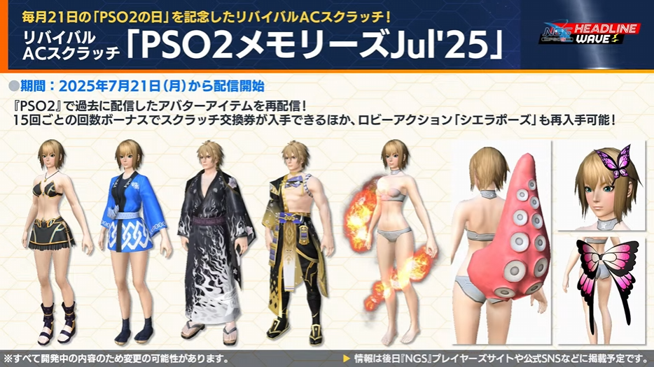 リバイバルACスクラッチ「 PSO2メモリーズJul'25」配信