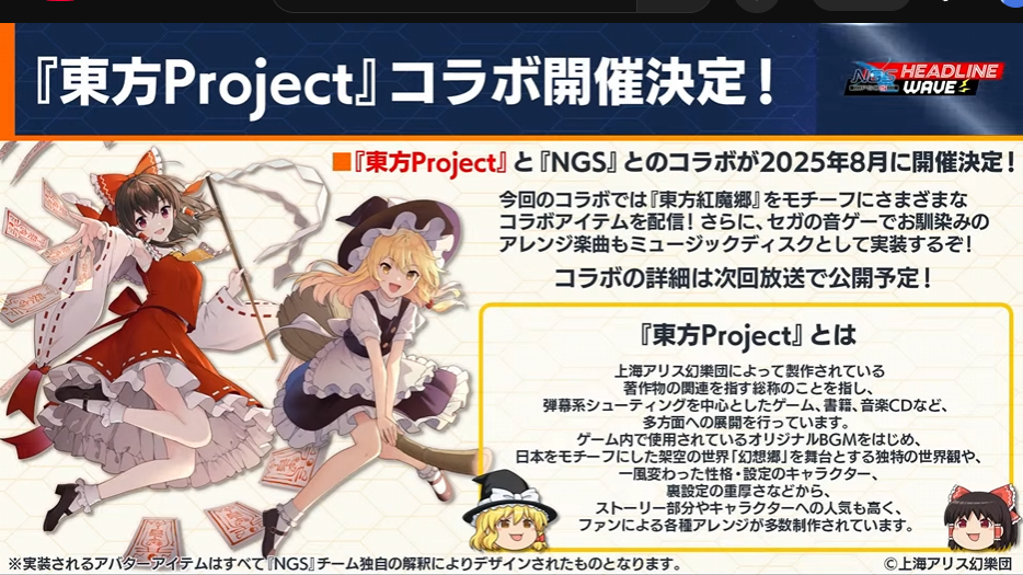 ■『東方Projiect』と『 NGS 』とのコラボが 2025 年 8 月に開催決定!