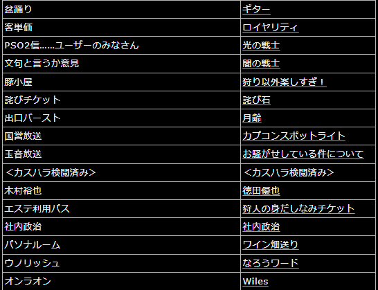 たこシあwikiのPSO2コーナーにて興味深い比較表が発掘されたとの事です