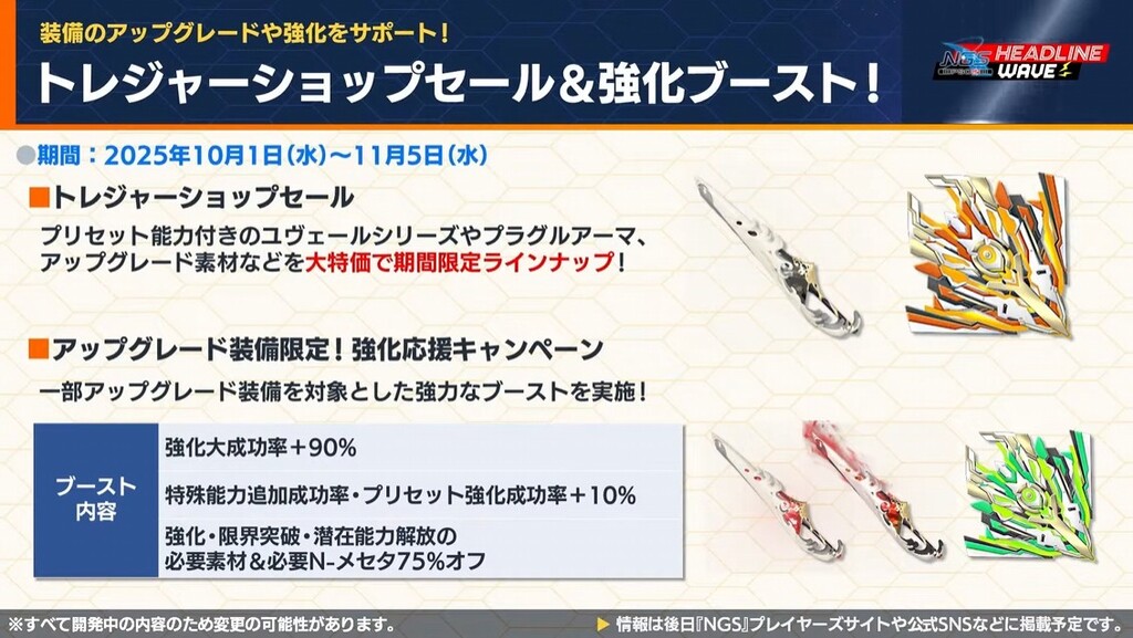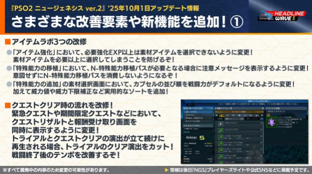 NGSヘッドラインWAVEを見るのがめんどくさい人用に25年9月19日NGSヘッドラインより9月後半以降のアップデート内容プチまとめ。重要な情報だけ抜粋、どうでもいい情報は省略&いい加減に引用しております。