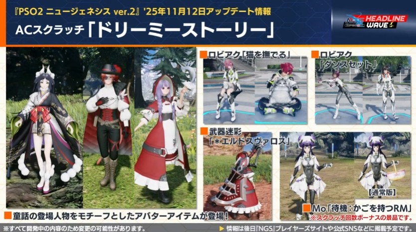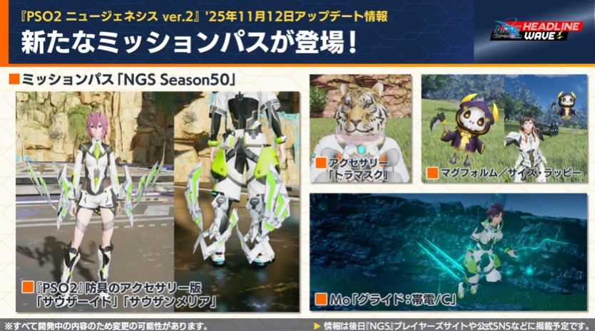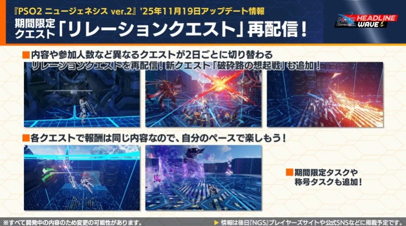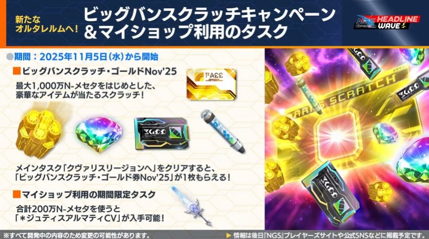 NGSヘッドラインWAVEを見るのがめんどくさい人用に25年10月28日NGSヘッドラインより10~11月以降のアップデート内容プチまとめ。重要な情報だけ抜粋、どうでもいい情報は省略&いい加減に引用しております。