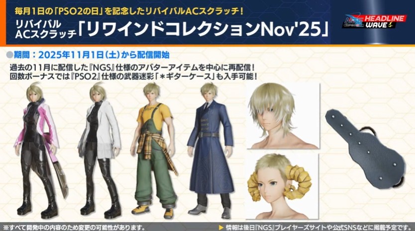 過去の11月に配信した『 NGS 』仕様のアバターアイテムを中心に再配信。