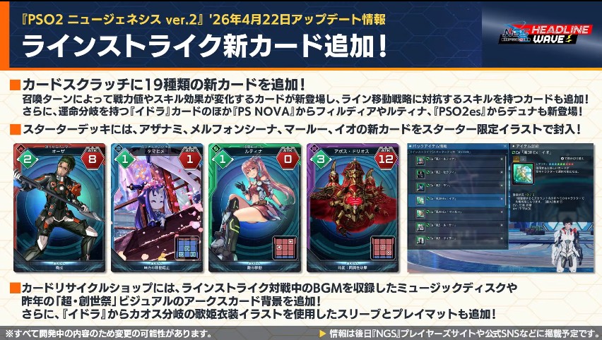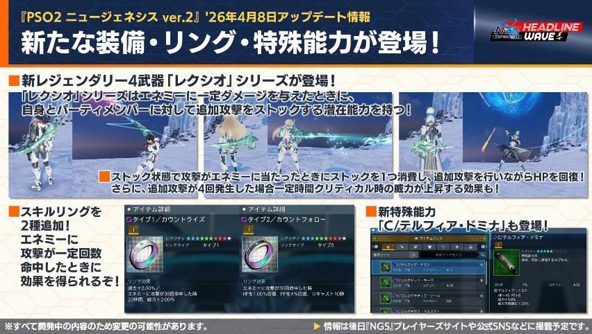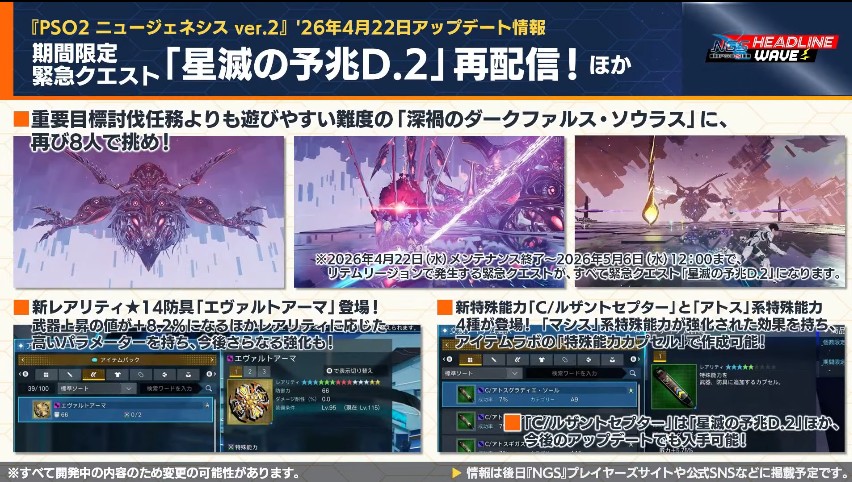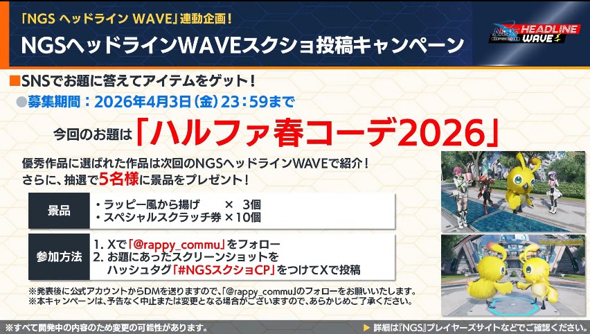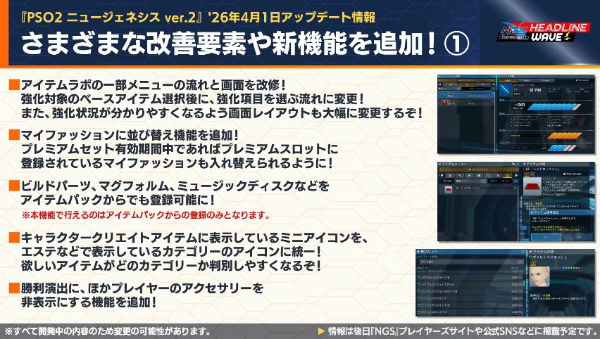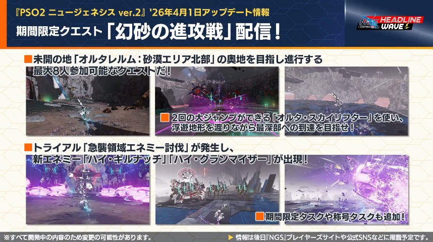NGSヘッドラインWAVEを見るのがめんどくさい人用に26年3月31日NGSヘッドラインより4月以降のアップデート内容プチまとめ。重要な情報だけ抜粋、どうでもいい情報は省略&いい加減に引用しております。