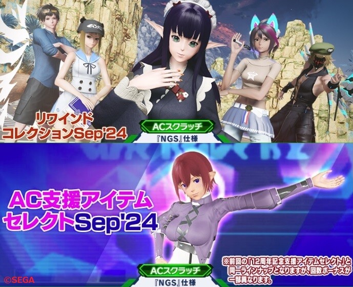 ACスクラッチ 超・星譚祭記念リバイバルは「ナデシコロング」「タイソヘアー」といった人気アイテムや、「超・星譚祭」のキービジュアルに使用されている「Nーピュアメイドドレス[Se]」などが再入手できるかもしれない初回無料のスクラッチ。
